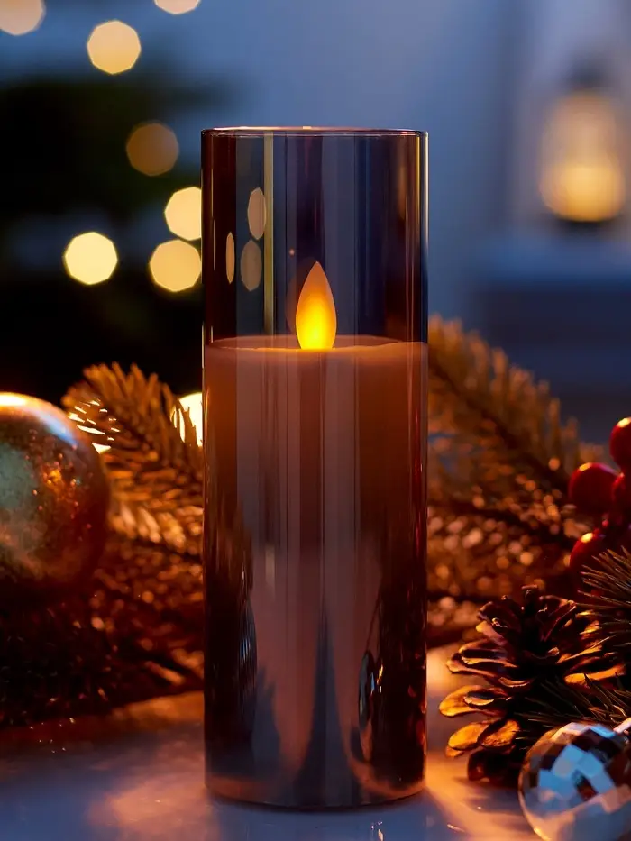 Светодиодная свеча "Серебристая" 20х5.5 см, AAx2 (не в компл.), Т/БЕЛЫЙ