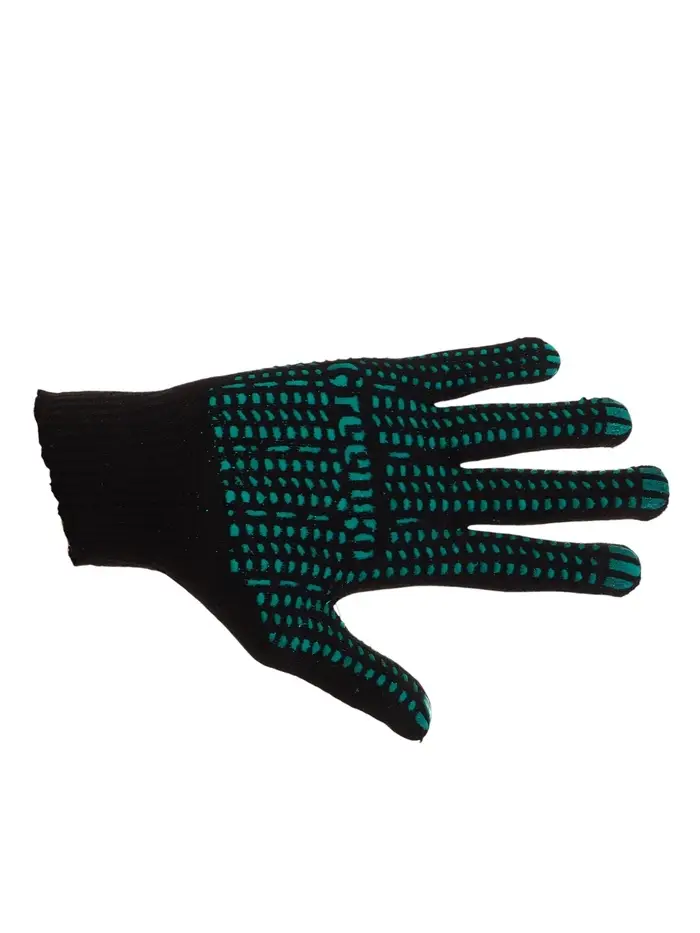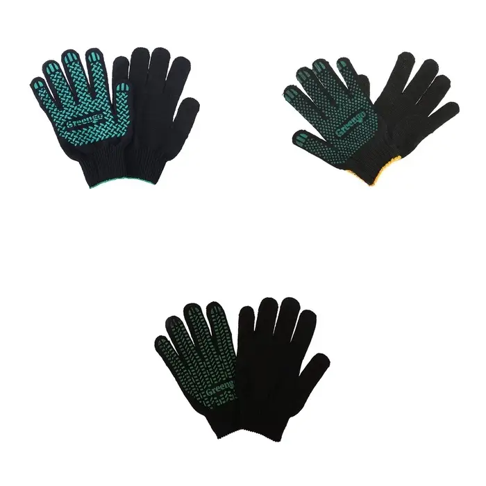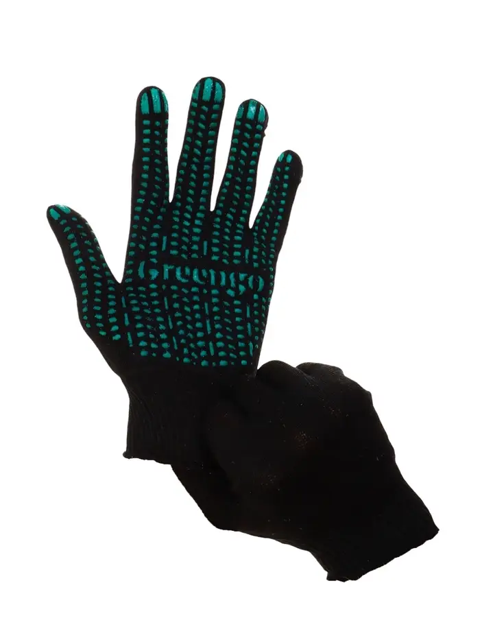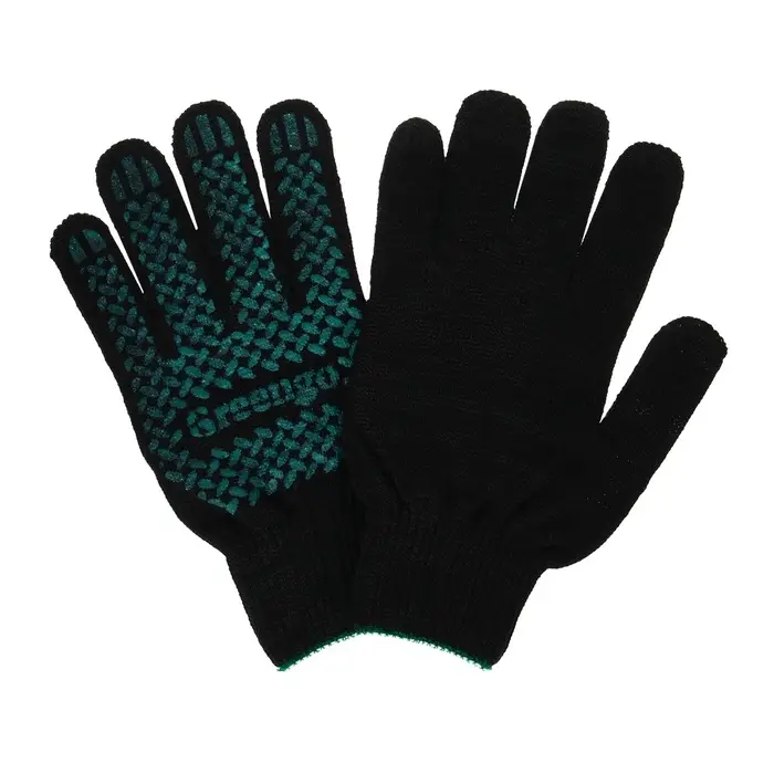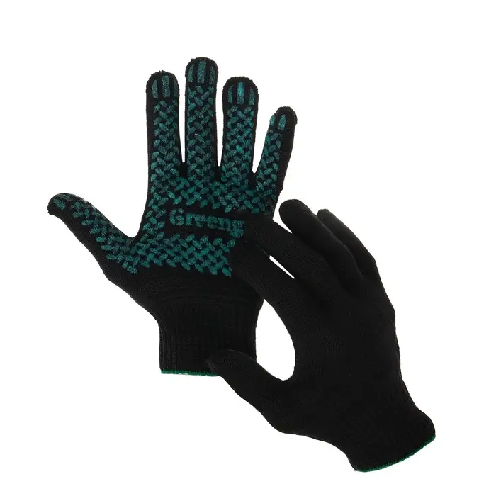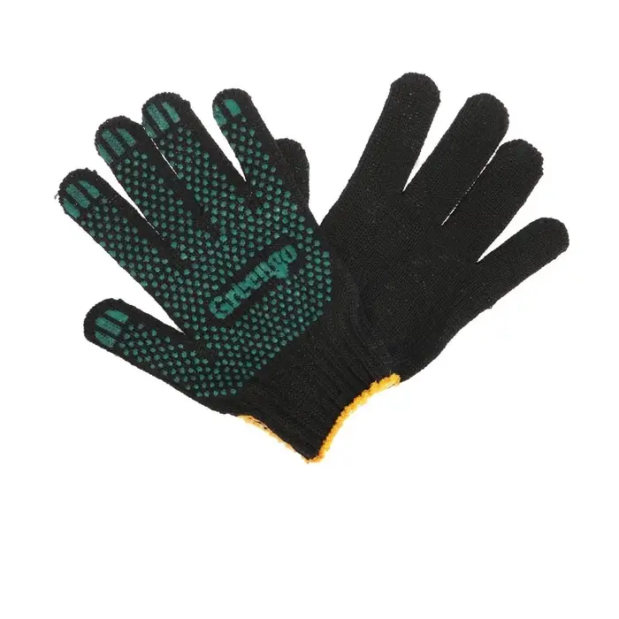 Перчатки садовые, хб, вязка 10 класс, 6 нитей, размер 9, с ПВХ точками, чёрные, Greengo