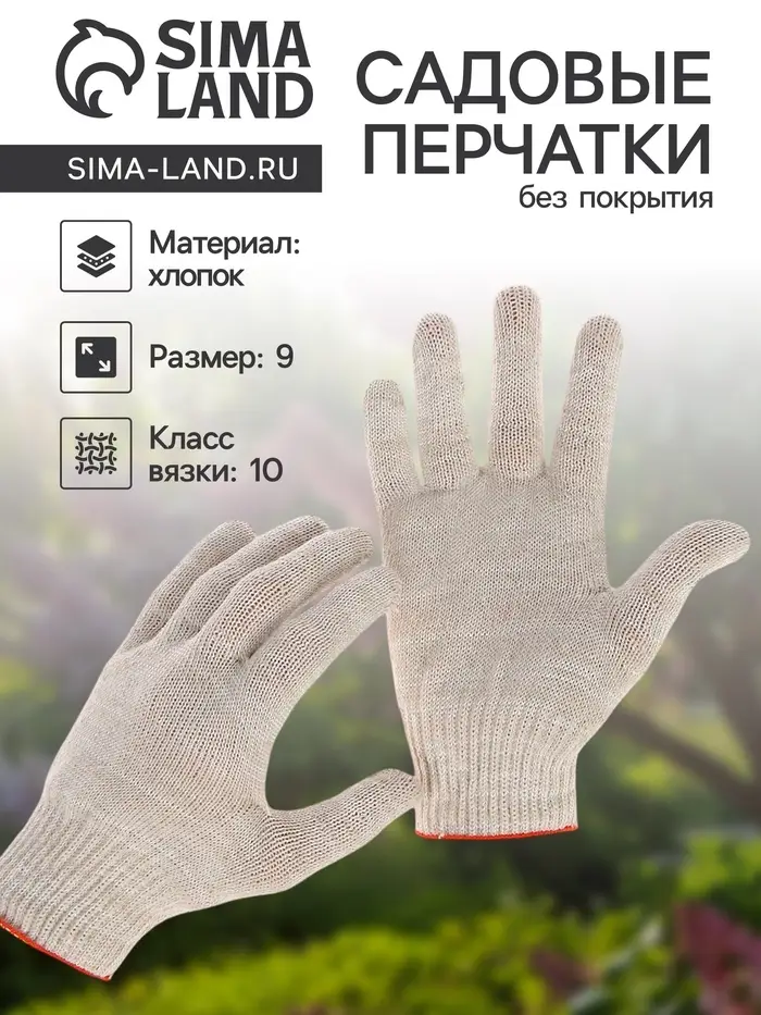 Перчатки садовые, выполненные из качественного хлопка, вязка 10 класс, размер 9. Белоснежные перчатки без покрытия — универсальный выбор для работы в саду. Подходят для таких задач, как прополка, сбор урожая или легкие хозяйственные работы. Хлопковый материал обеспечивает комфорт при длительном использовании, не сковывает движения и сохраняет воздухопроницаемость.