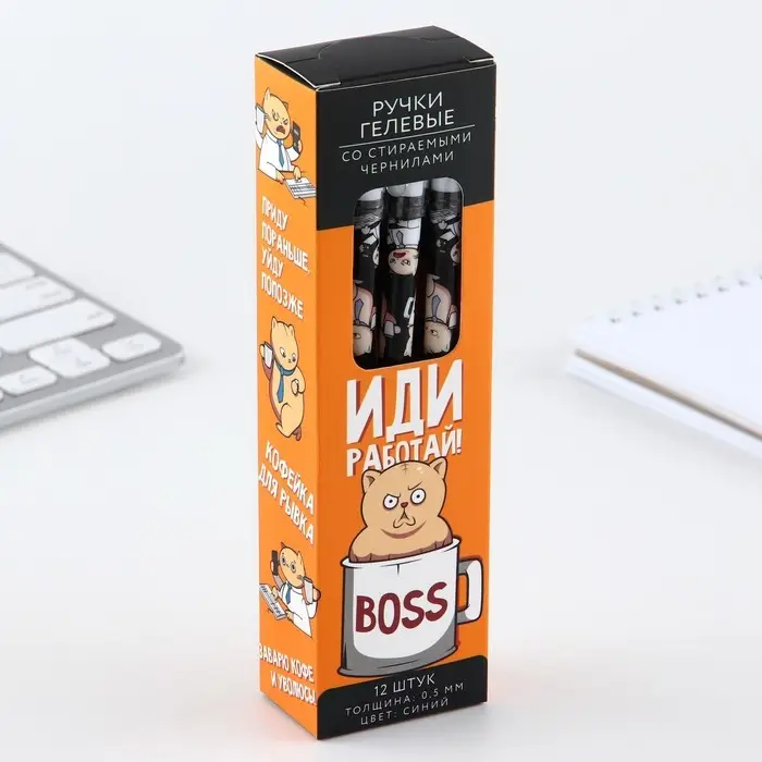 Ручка прикол пиши стирай синяя паста с колпачком «Трудокотик» гелевая 0,5 мм