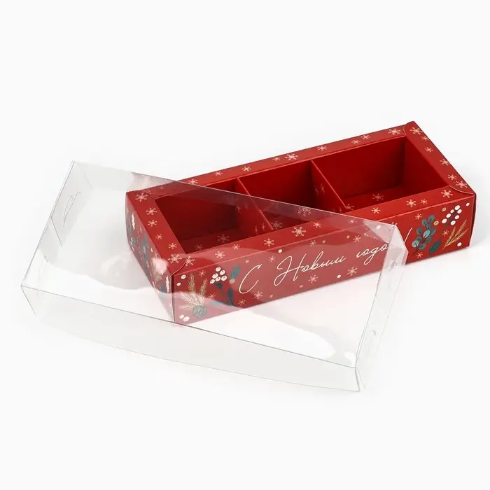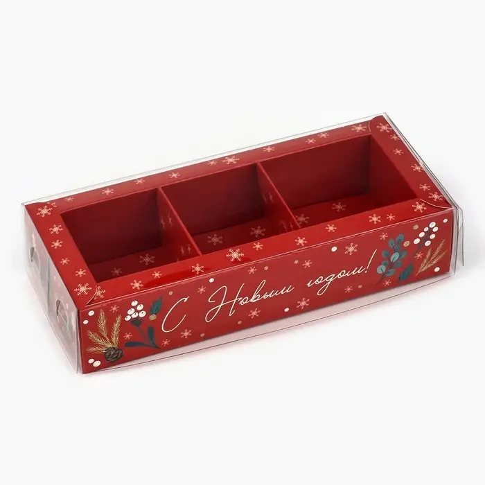 Коробка под 3 конфеты с ячейками «С Новым годом!», 14.5 х 6 х 3 см