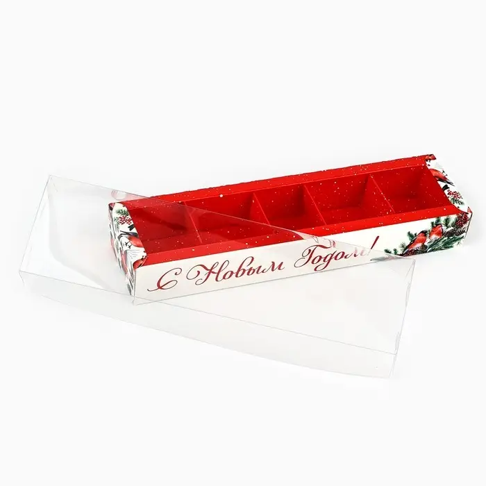 Коробка под 5 конфет с ячейками «Снегири», 6 х 23 х 3 см