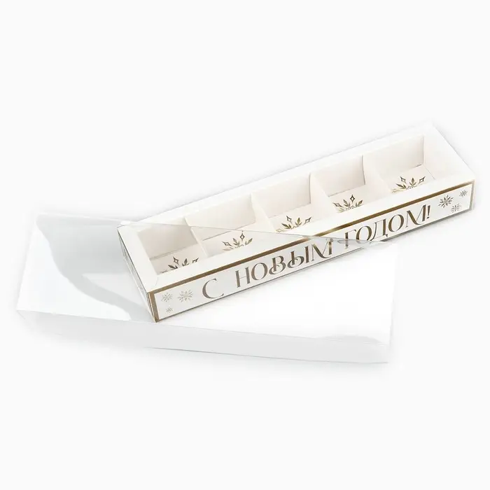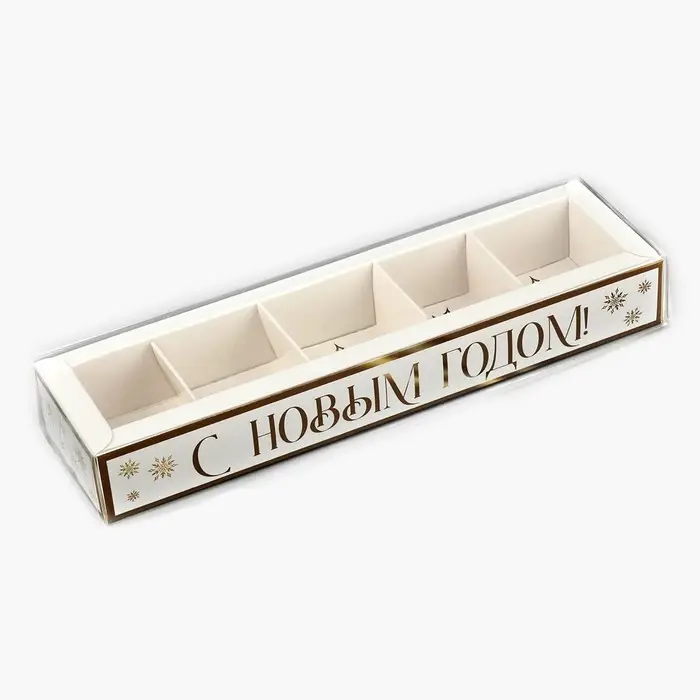 Коробка под 5 конфет с ячейками «Золотые снежинки», 6 х 23 х 3 см