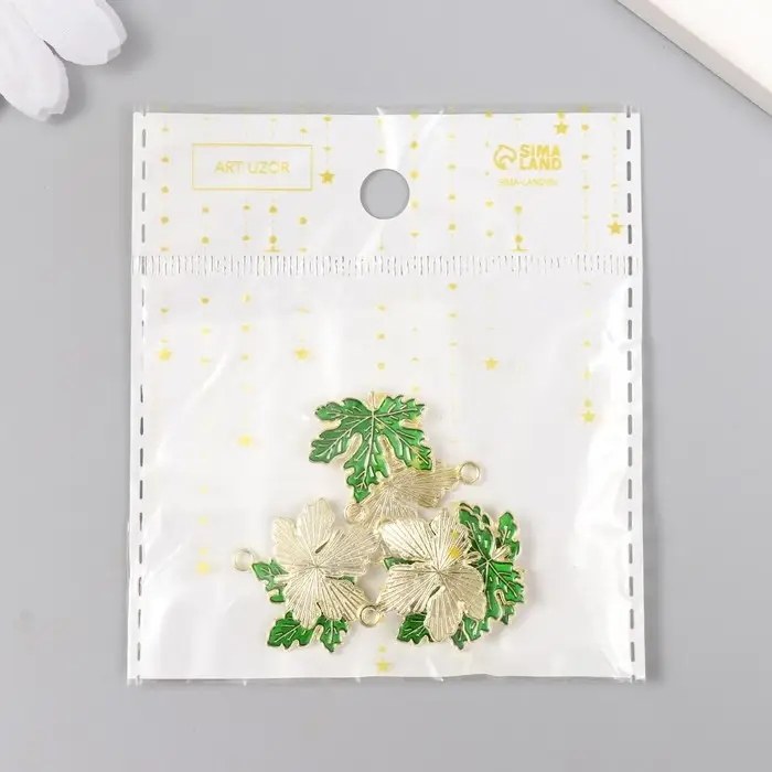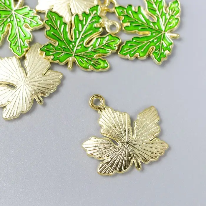 Декор для творчества металл, эмаль "Кленовый листик" зелёный 2х2 см