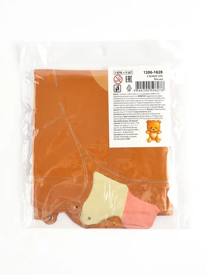 Воздушные шары фольгированные 15" «Мишка», 5 шт., для палочки