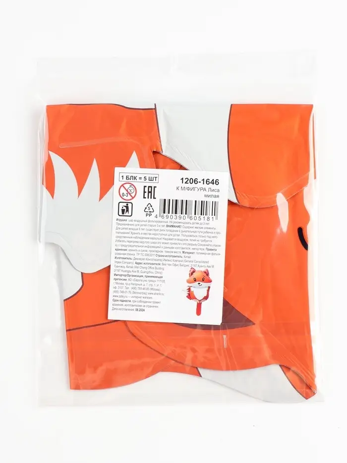 Воздушные шары фольгированные 15" «Лиса», 5 шт., для палочки