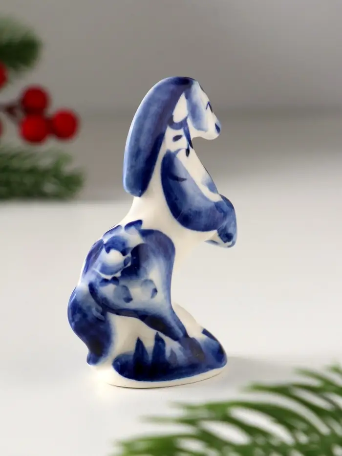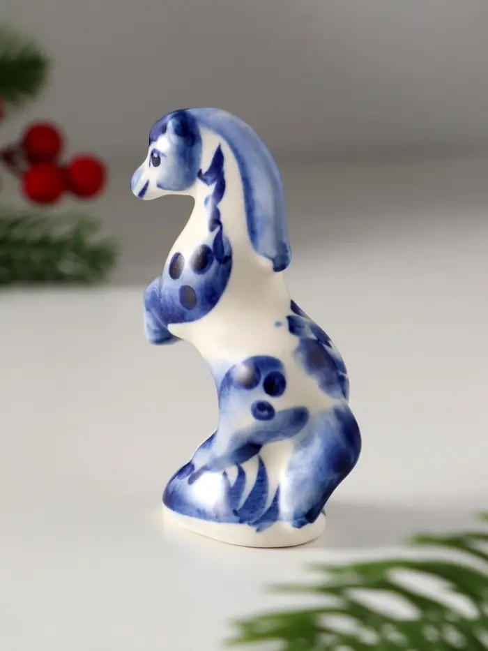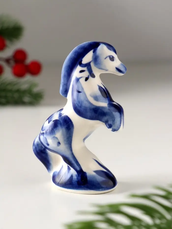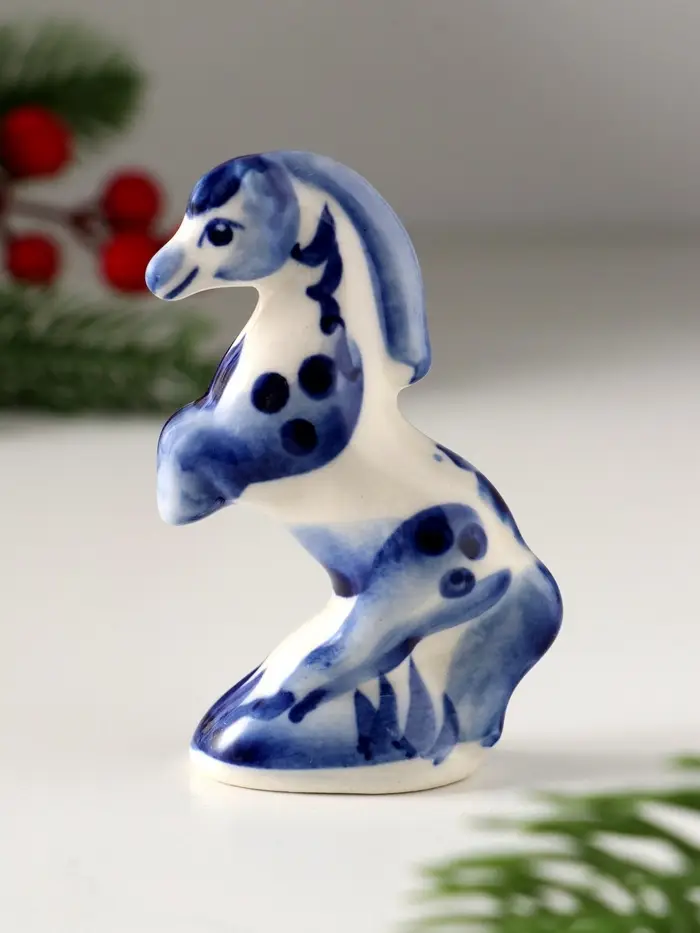 Сувенир Конь на дыбах, 8х5 см, гжель