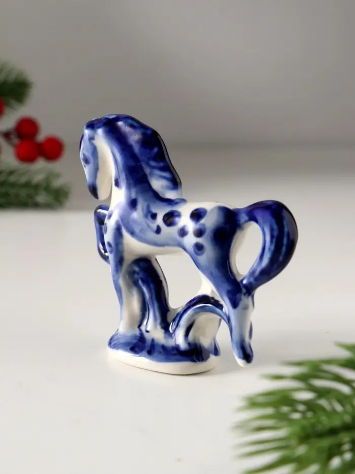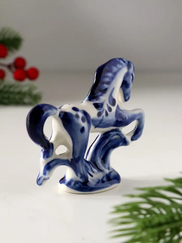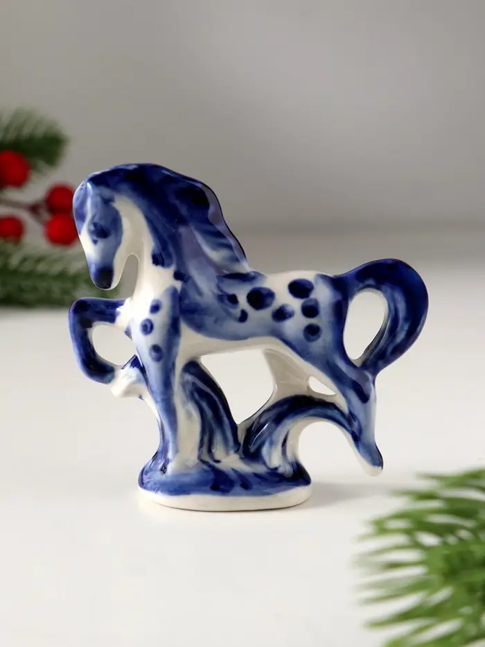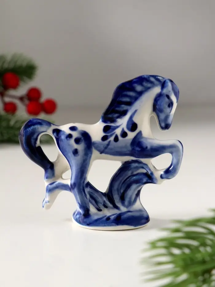 Сувенир Конь на подставке, 8х8 см, гжель