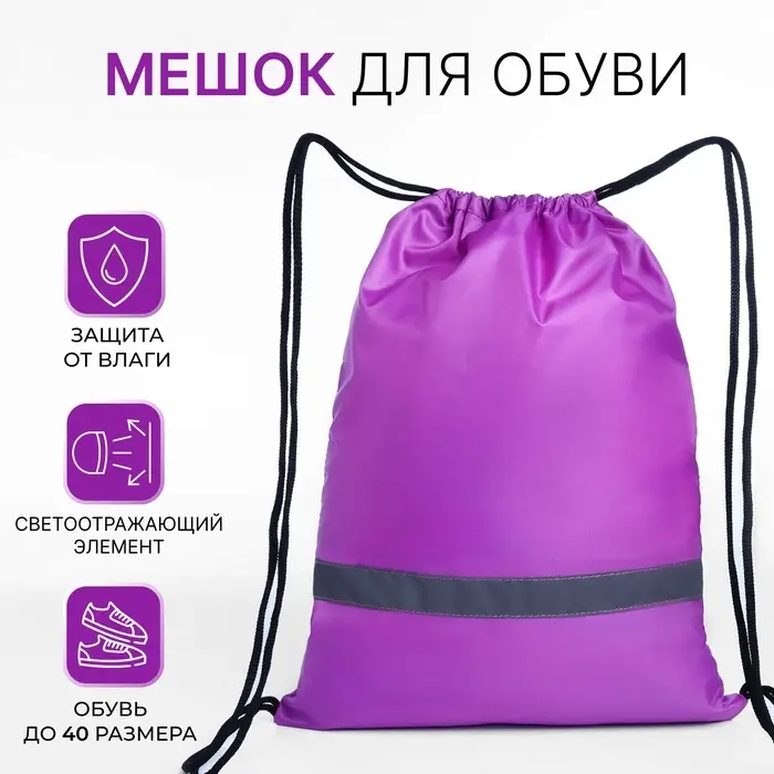 Мешок для обуви на шнурке, «ЗФТС», светоотражающая полоса, цвет сиреневый