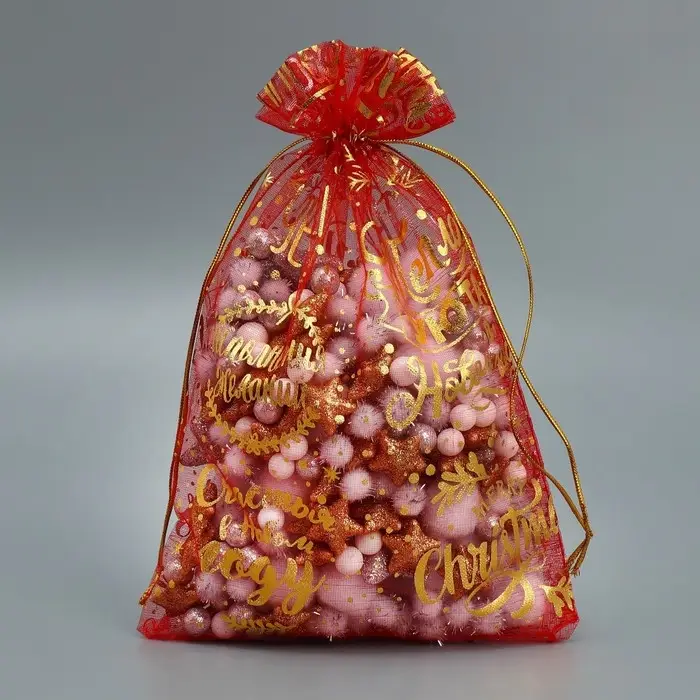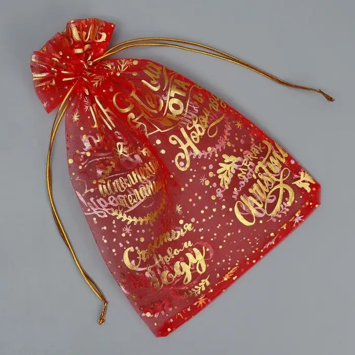 Мешочек подарочный органза «Happy new year», 16 х 24 см +/- 1.5 см
