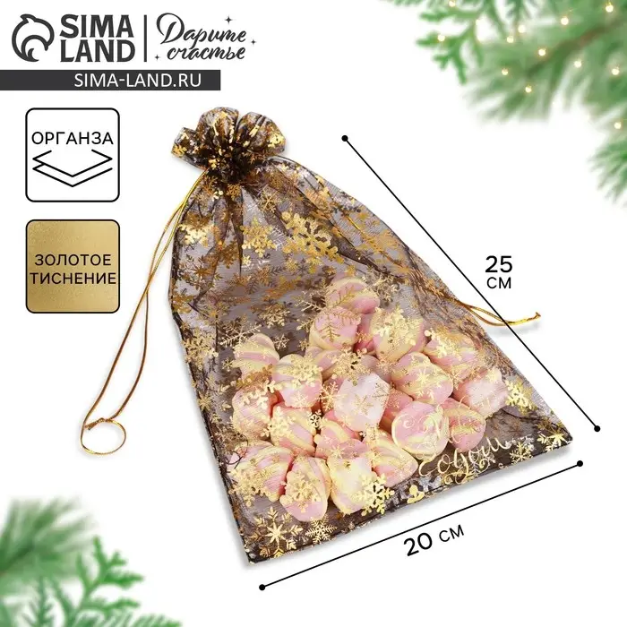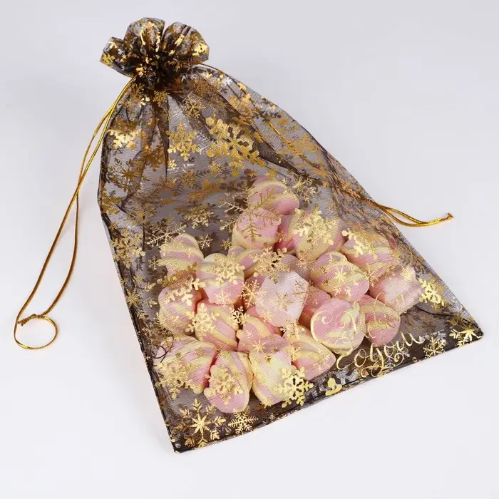 Мешочек подарочный органза «Новогодние снежинки», 20 х 30 см +/- 1.5 см