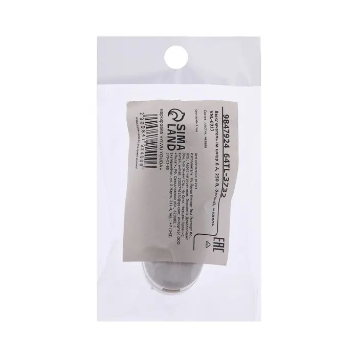 Выключатель на шнур 6 А, 250 В, белый, 1шт.