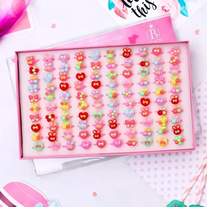 Кольцо детское «Выбражулька» ассорти для девочек, форма МИКС, цвет МИКС, безразмерное