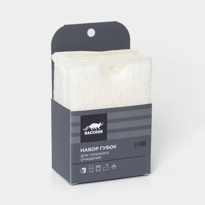 Набор губок скраберов из микроволокна для глубокой отчистки Raccoon, 3 шт, 12×8,5×1,4 см, цвет белый