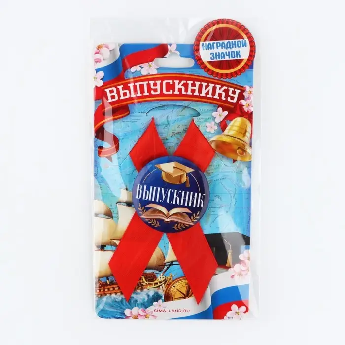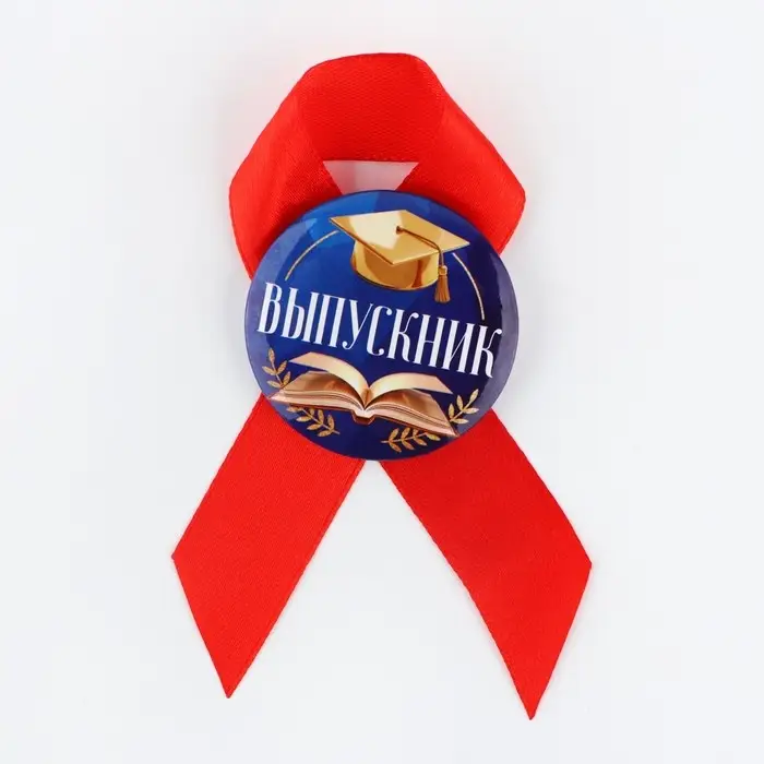 Значок с лентой на Выпускной «Выпускник», книга, диам. 4,5 см