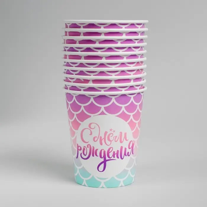 Стакан одноразовый бумажный "С днем рождения", 250 мл
