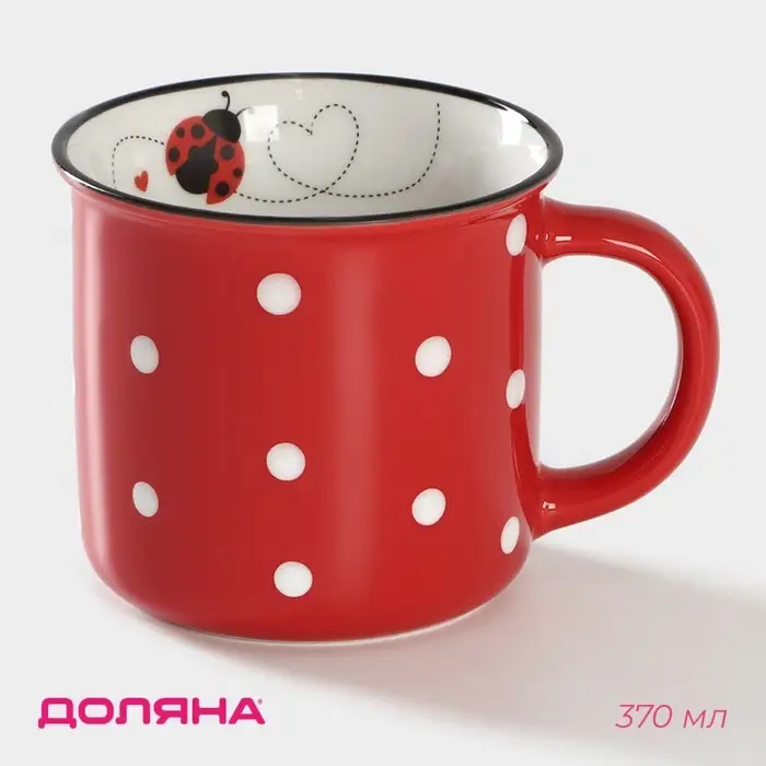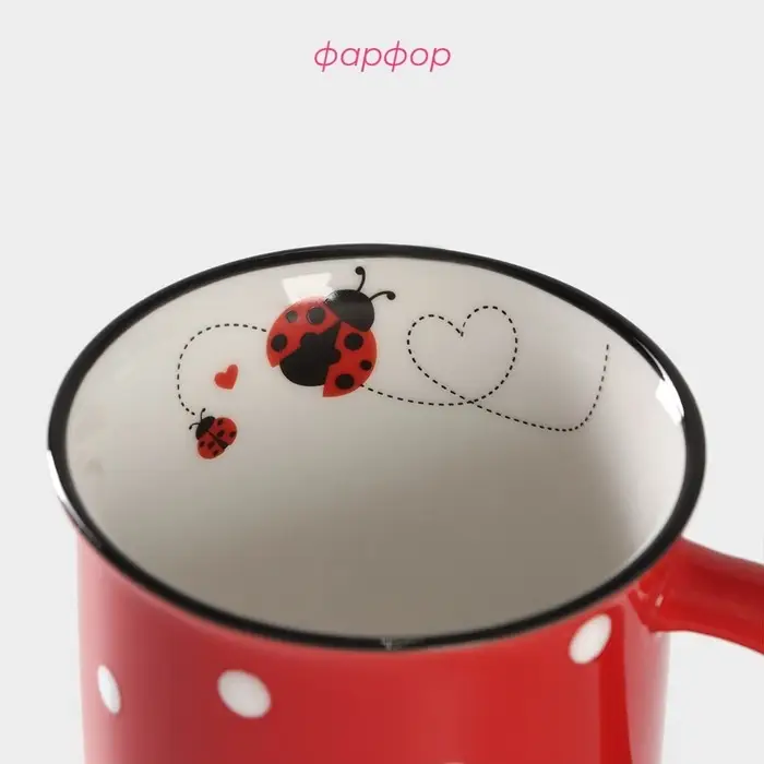 Кружка фарфоровая Доляна «Божья коровка», 370 мл, цвет красный