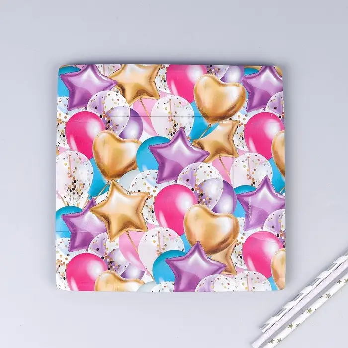 Тарелка одноразовая бумажная квадратная "С днём рождения" шары