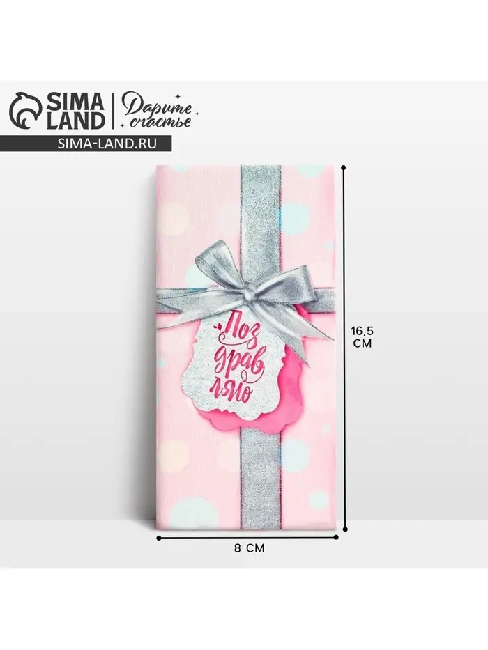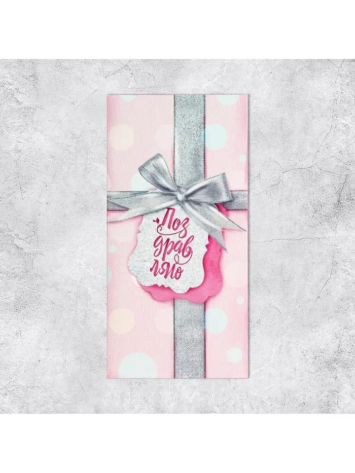 Конверт для денег "Поздравляю!" серебряный бант, 16.5 х 8 см
