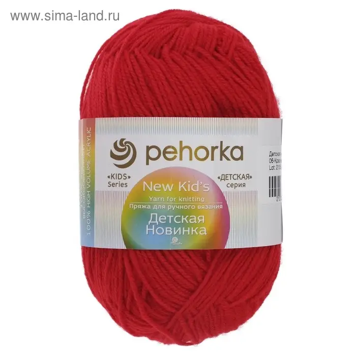 Пряжа для вязания спицами, крючком «Пехорский текстиль. Детская новинка», 100% акрил, 200 м/50 г, (06 красный)