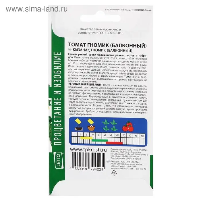 Семена Томат "Гномик", балконный, ранний, детерминантный,низкорослый, 0,05 г