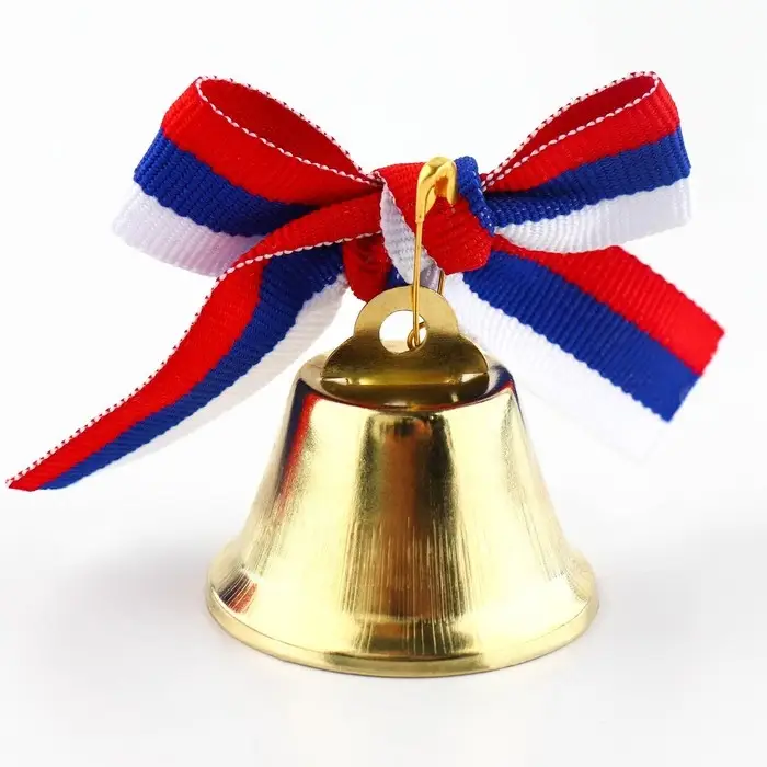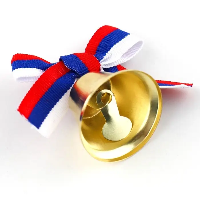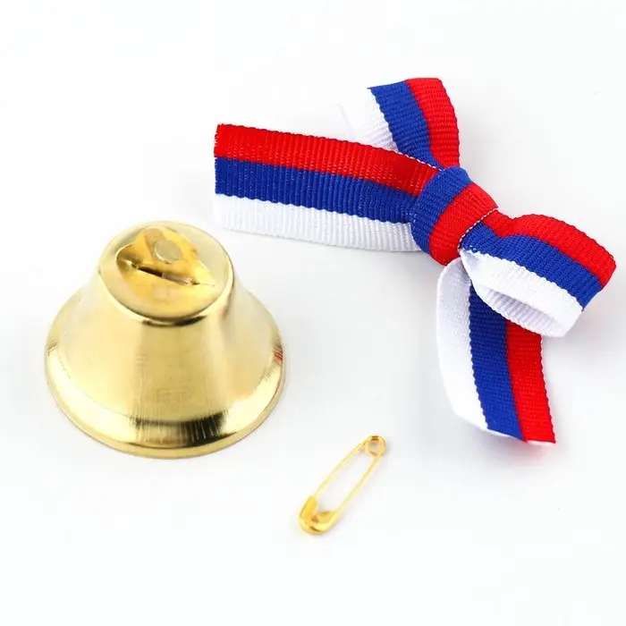 Колокольчик на булавке с бантом на выпускной, триколор, d = 3,6 см