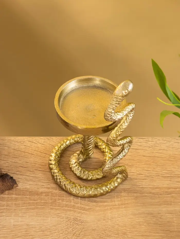 Подсвечник для свечи 8 см "Змея" алюминий 9х9х16 см, цв. золото