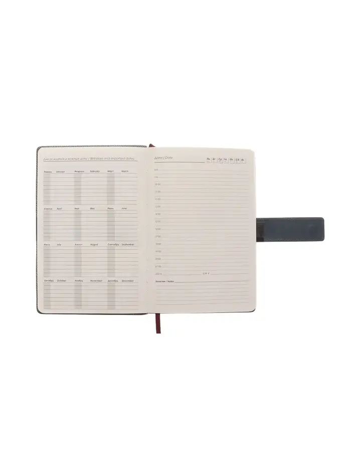 Ежедневник недатированный формат А5, с хлястиком, 128л, линия, пвх, Серый