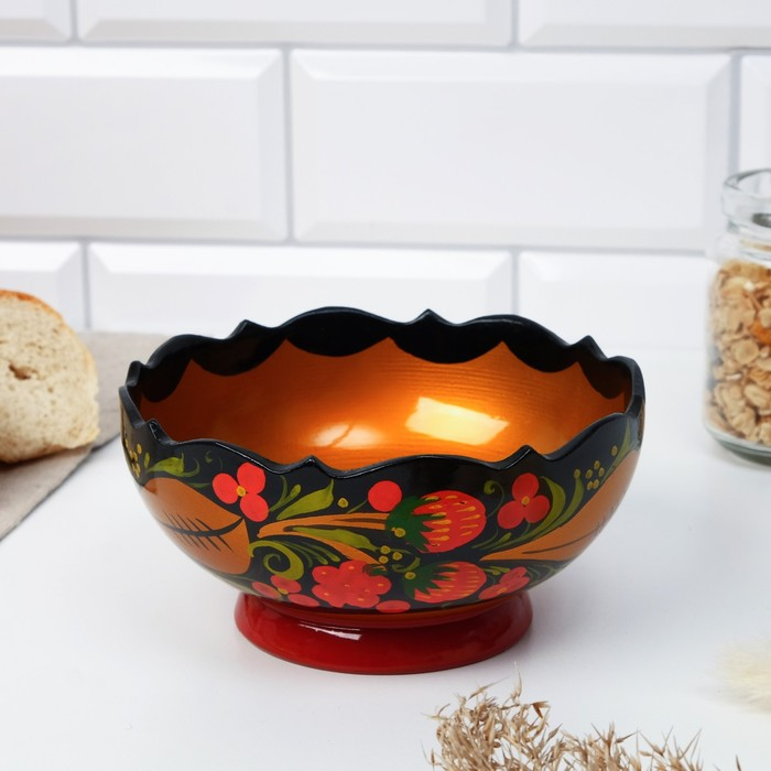 Салатник, резной, 15-16×7 см, хохлома