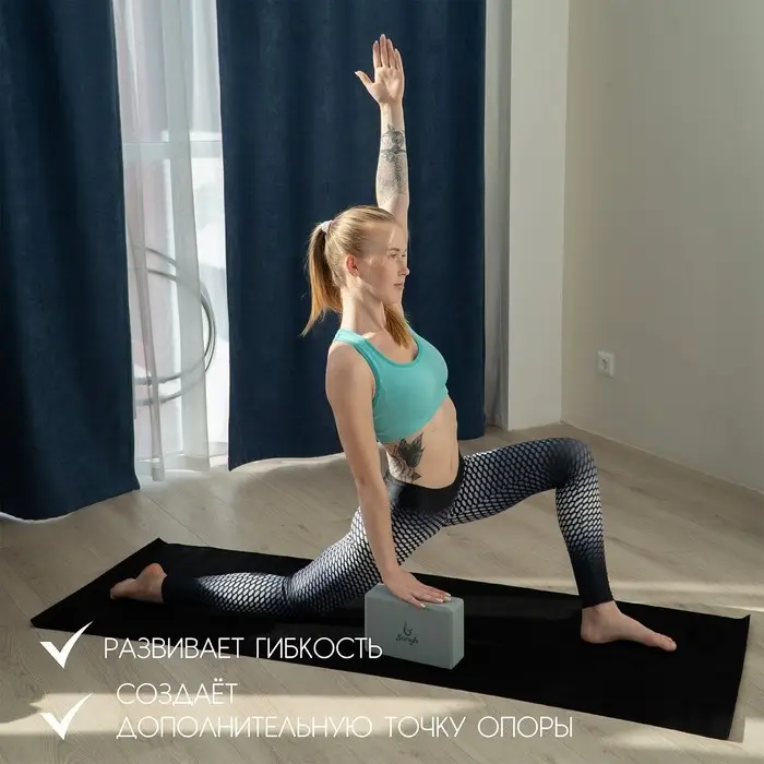 Йога-блок (йога-кирпич) применяется для создания дополнительной точки опоры. Он помогает развивать гибкость постепенно, без лишнего напряжения в мышцах и суставах. Необходим для тех, кто только начинает заниматься йогой, и кому не хватает гибкости, чтобы иметь правильную опору для рук и ног при выполнении асан.
