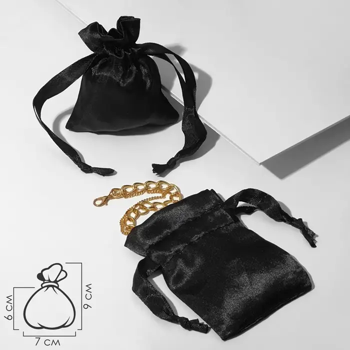 Мешочек подарочный атласный с лентой, 7×9 см, чёрный