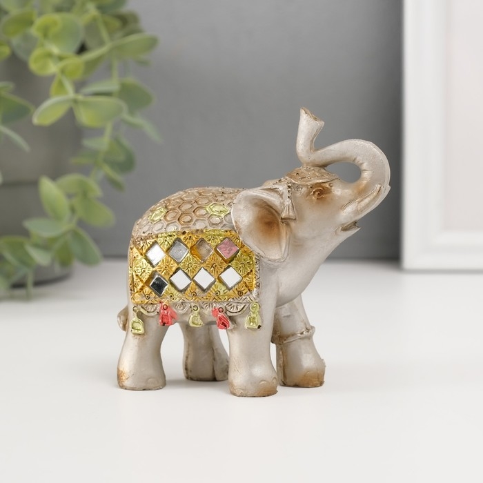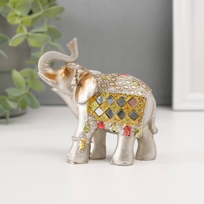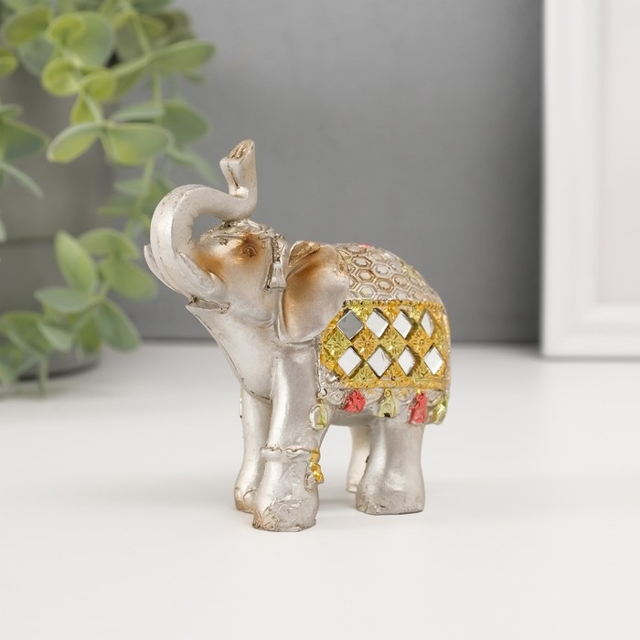 Сувенир полистоун зеркальные вставки (набор 7 шт) "Стадо слонов"11, 10, 8,5, 8, 7, 6,3;5,3см