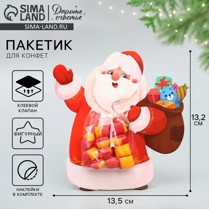 Пакет под сладости «Дед Мороз», 11 х 6 см