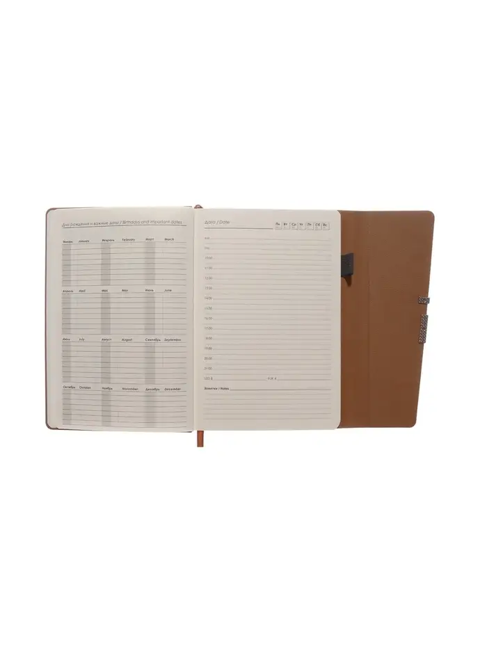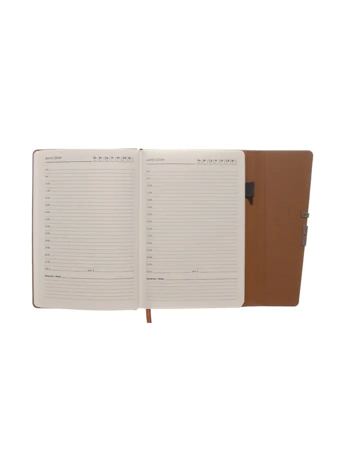 Ежедневник недатированный формат А5, с клапаном, 96л, линия, пвх, Коричневый