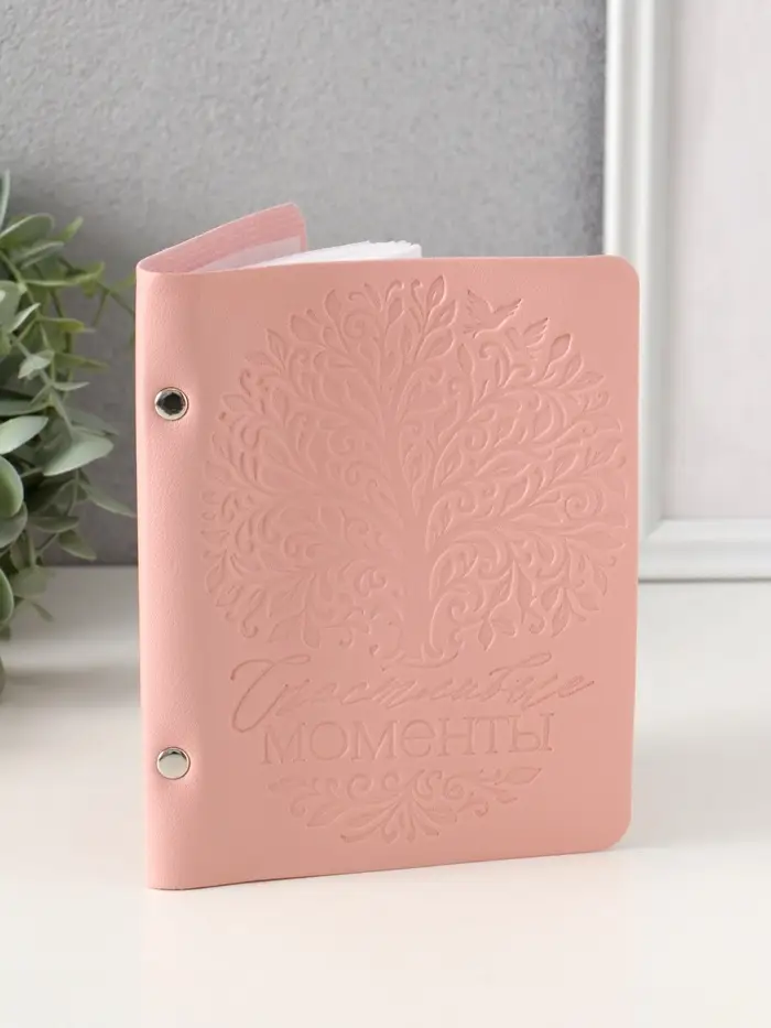 Фотоальбом из кожзама “ Счастливые моменты” розовый, 12,5 х 17 см