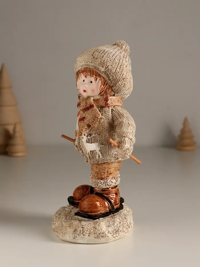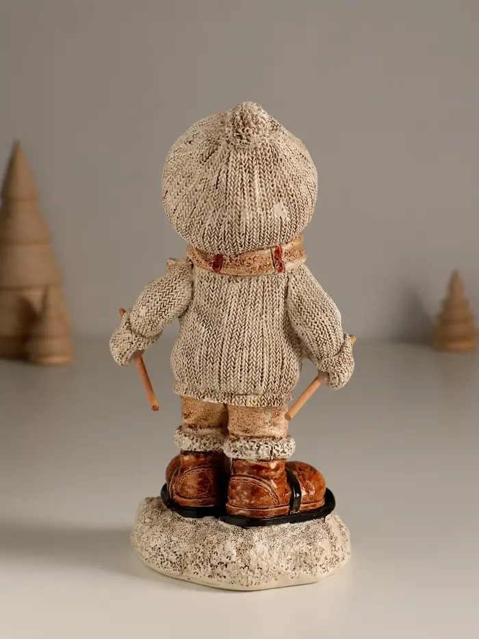 Сувенир полистоун "Малыш в вязаном наряде на мини-лыжах" 8,5х8х17,5 см