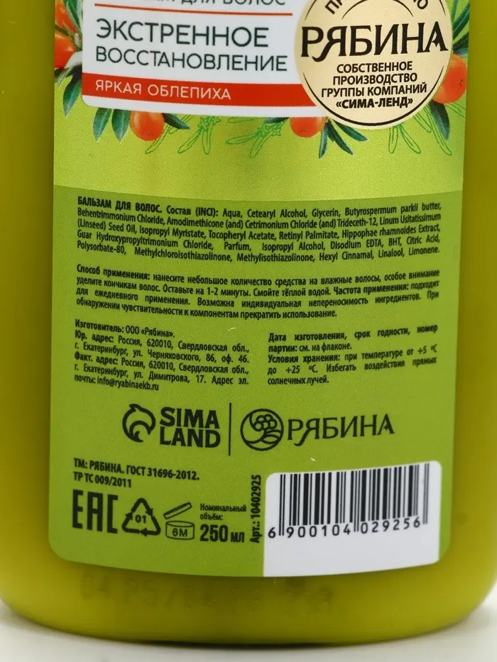Бальзам для волос облепиха, 250 мл