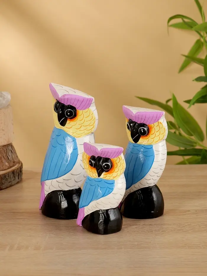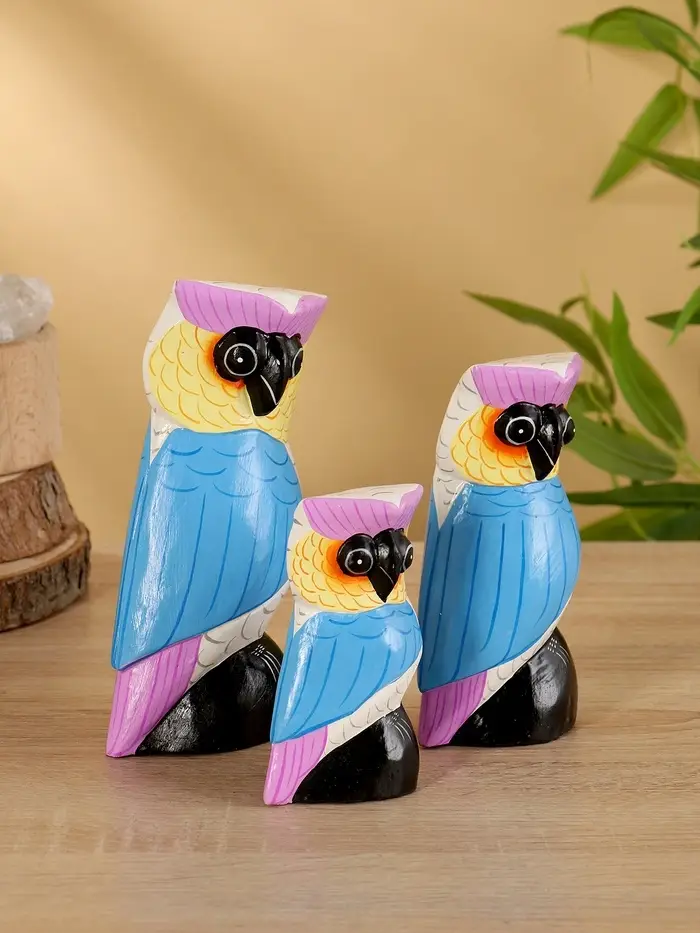Набор сувенирный «Совы», h=18 см, h=14.5 см, h=11 см, дерево, бело-синий