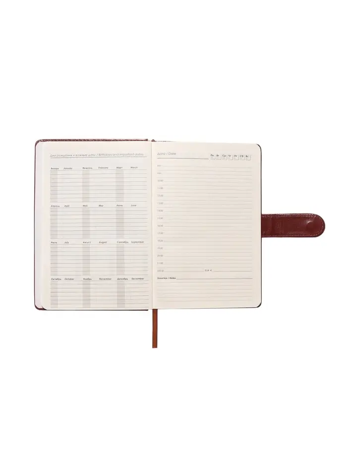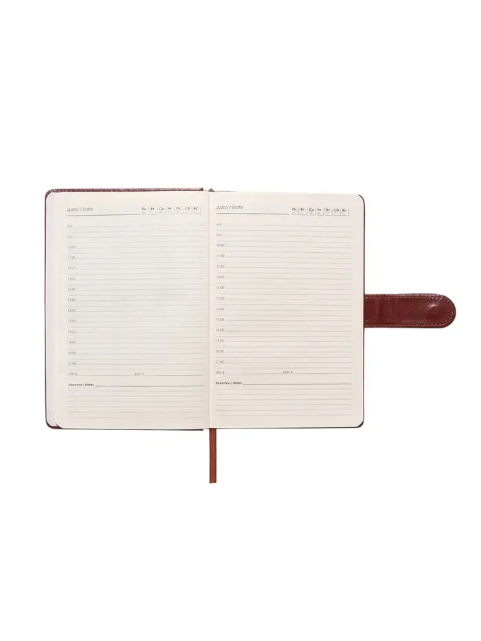Ежедневник недатированный формат А5, с хлястиком, 112л, линия, пвх, Классика Коричневый