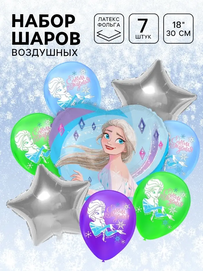 Шары воздушные, набор 8 шт, фольга, латекс, Холодное сердце