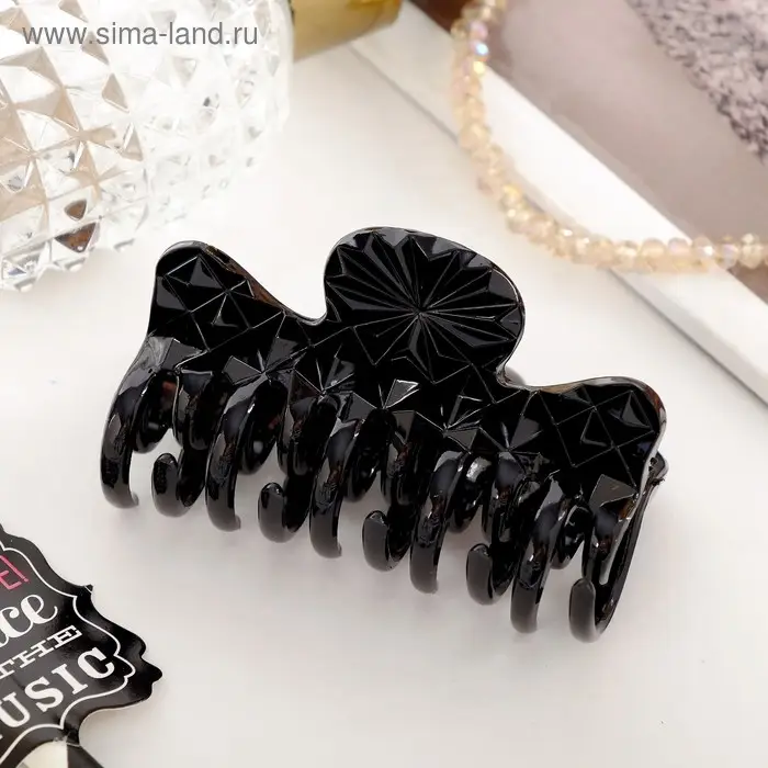 Краб для волос "Глянец" грани, 6,5 см, чёрный