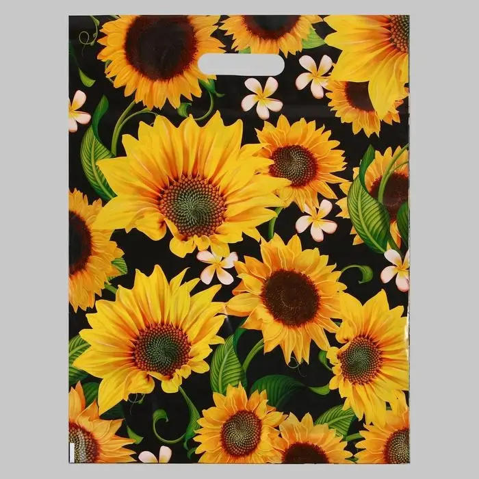 Пакет "Подсолнухи", полиэтиленовый с вырубной ручкой, 60 мкм 38 х 47 см