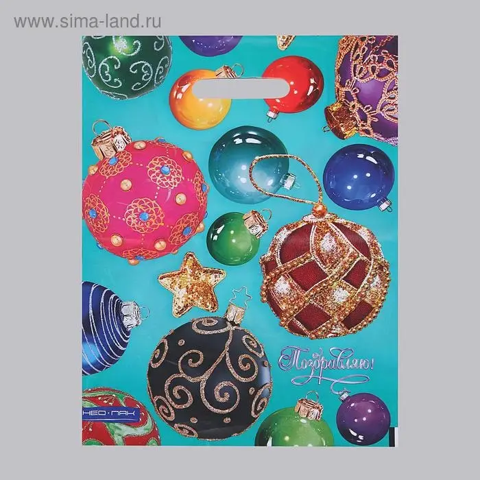 Новогодний подарочный пакет с ярким, красочным рисунком создаст праздничное настроение.
