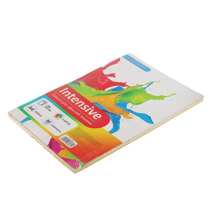 Бумага цветная А4, 100 листов Calligrata Интенсив, 5 цветов, 80 г/м²
