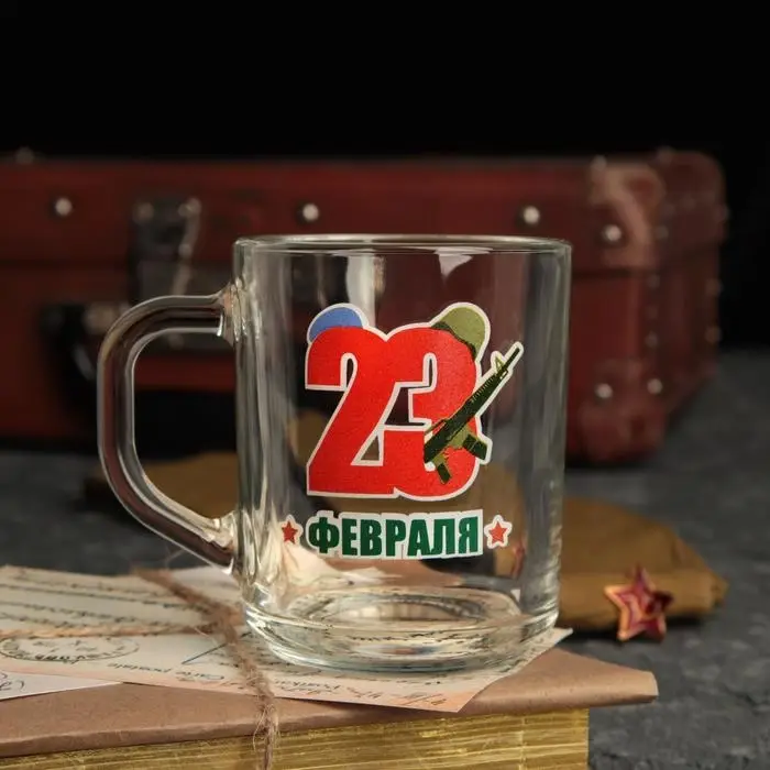 Кружка чайная стеклянная «23 Февраля», 200 мл