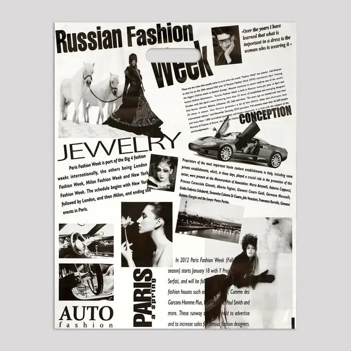 Пакет полиэтиленовый с вырубной ручкой, прочный с оригинальным рисунком.