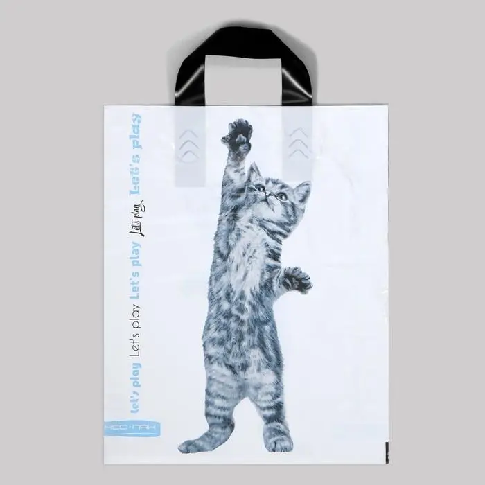 Пакет полиэтиленовый с петлевой ручкой, прочный с оригинальным рисунком.