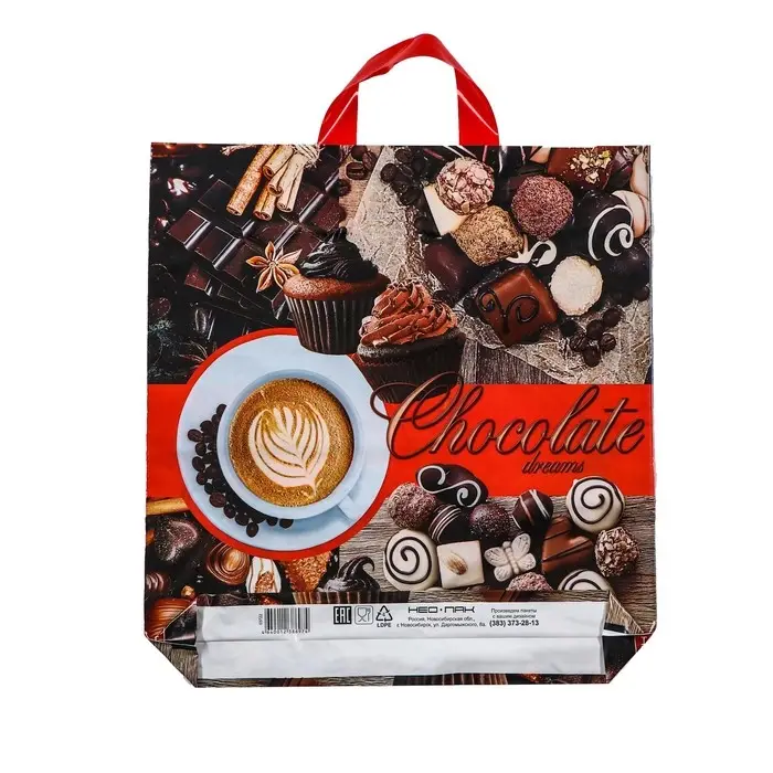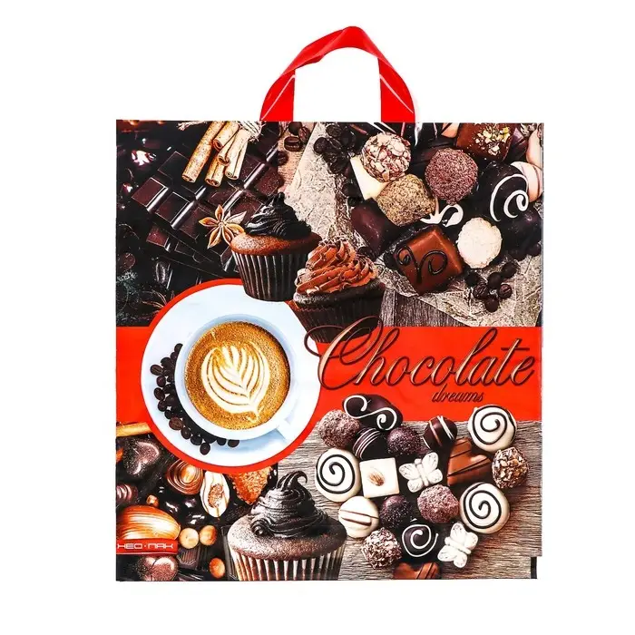 Пакет "Кофе и шоколад", полиэтиленовый с петлевой ручкой, 38x40 см, 40 мкм