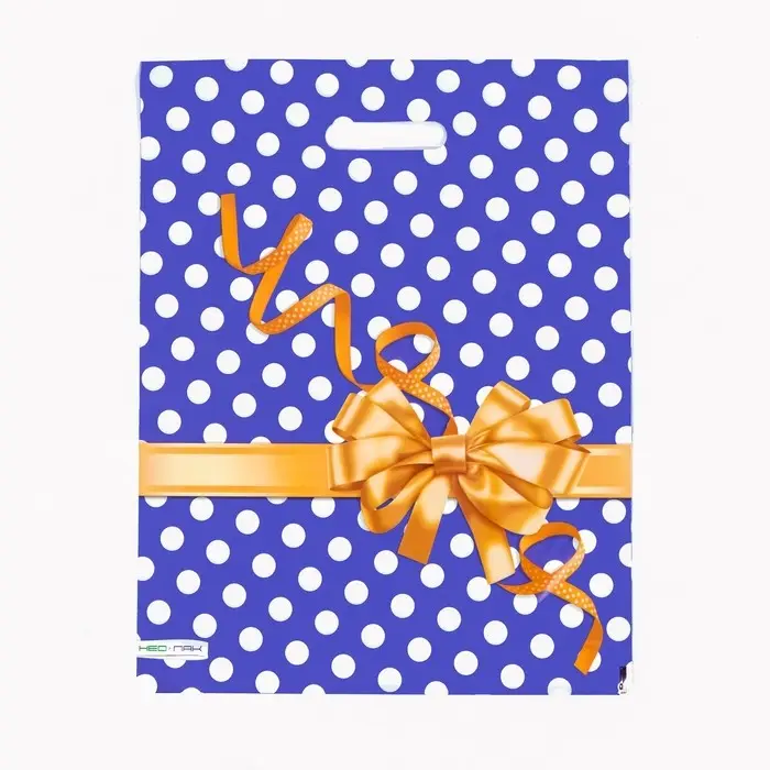 Пакет "Золотой бантик", полиэтиленовый, с вырубной ручкой, 38 х 47 см, 60 мкм