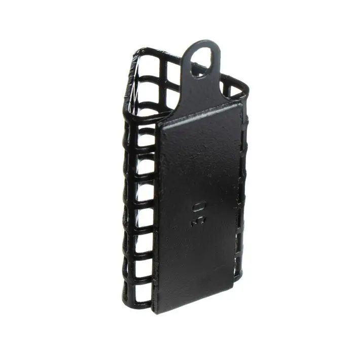 Изготовлены из толстой стальной сетки со свинцовым грузом и петелькой. Окрашены в чёрный матовый цвет с помощью порошкового напыления, стойкого к истиранию и ударам. Наличие дна замедляет вымывание прикормки.